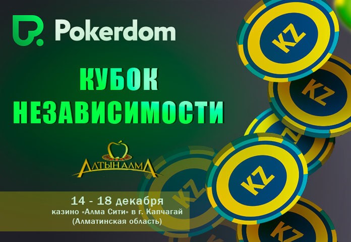 Популярная покерная комната PokerDom решила организовать турнир в честь Дня независимости Казахстана, который будет проведен совместно с казино «Алтын Алма» с 14 по 18 декабря и будет носить название «Кубок независимости». Гарантированный призовой фонд равен 15 000 000 тенге.